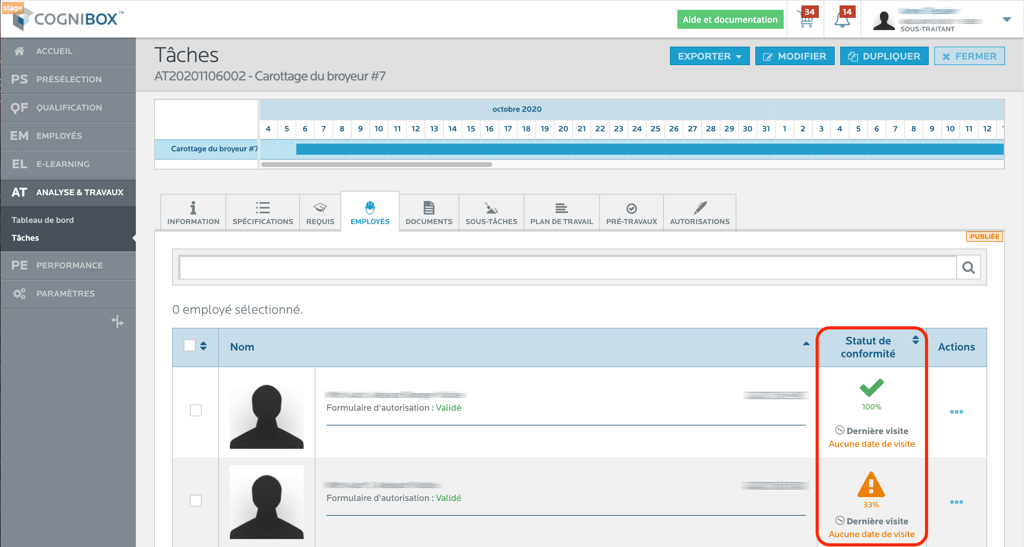 De nouvelles icônes illustrent plus clairement le statut de conformité d'un employé pour une tâche.